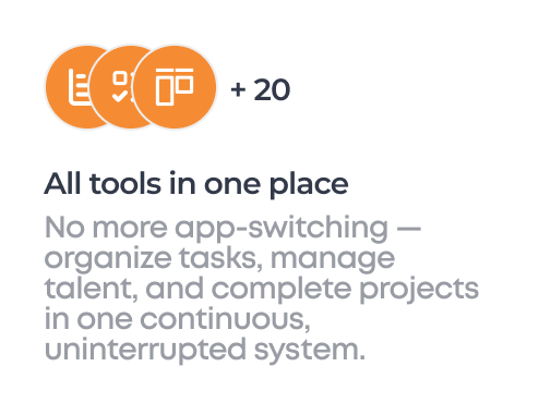 Plan tasks, meetings, and sales. Control the deadlines. Optimize processes and costs. Increase the productivity of the team.