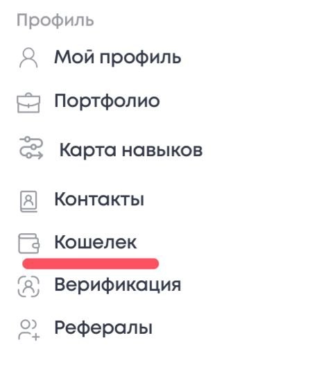 1. На странице профиля в вертикальном меню нажать на раздел "Кошелек".
