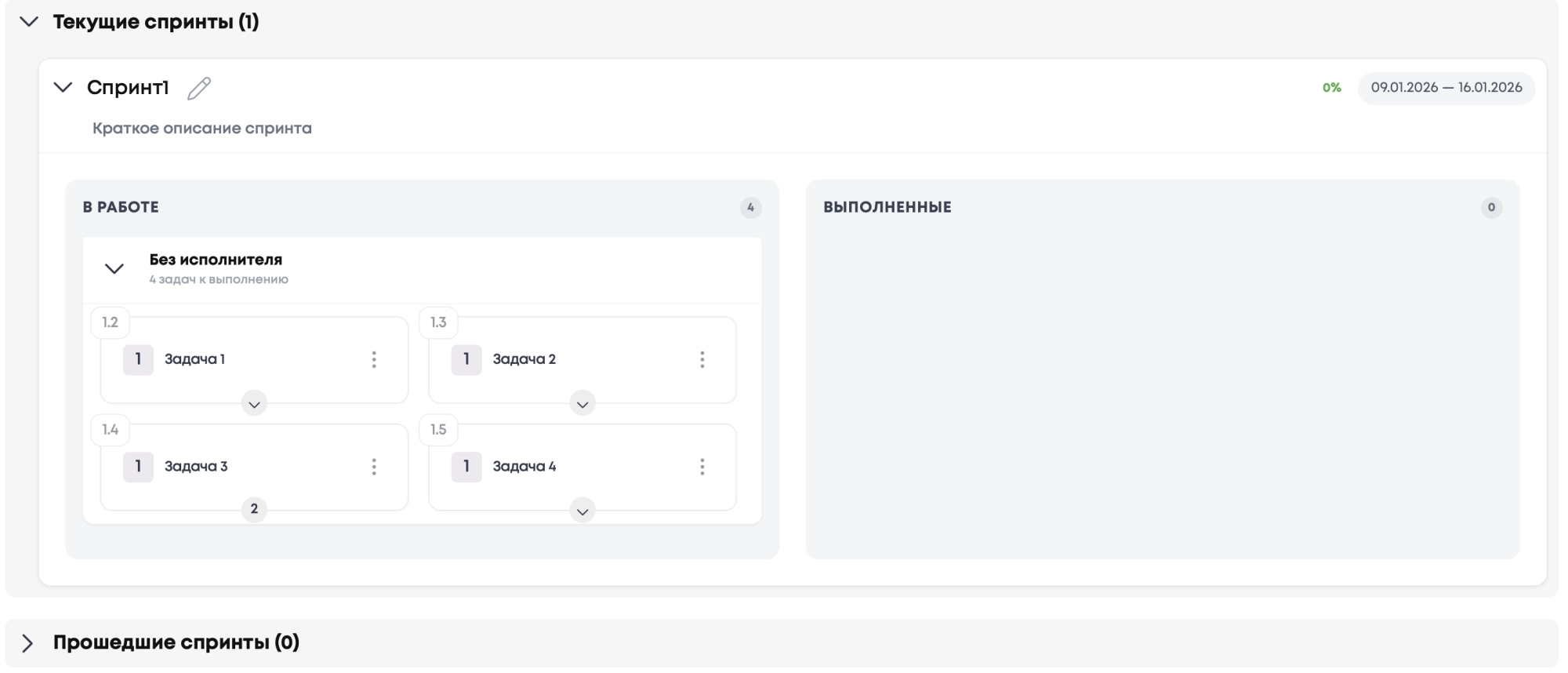 Сервис «Спринты» помогает команде сосредоточиться на задачах, которые нужно выполнить за ограниченный период времени (спринт).